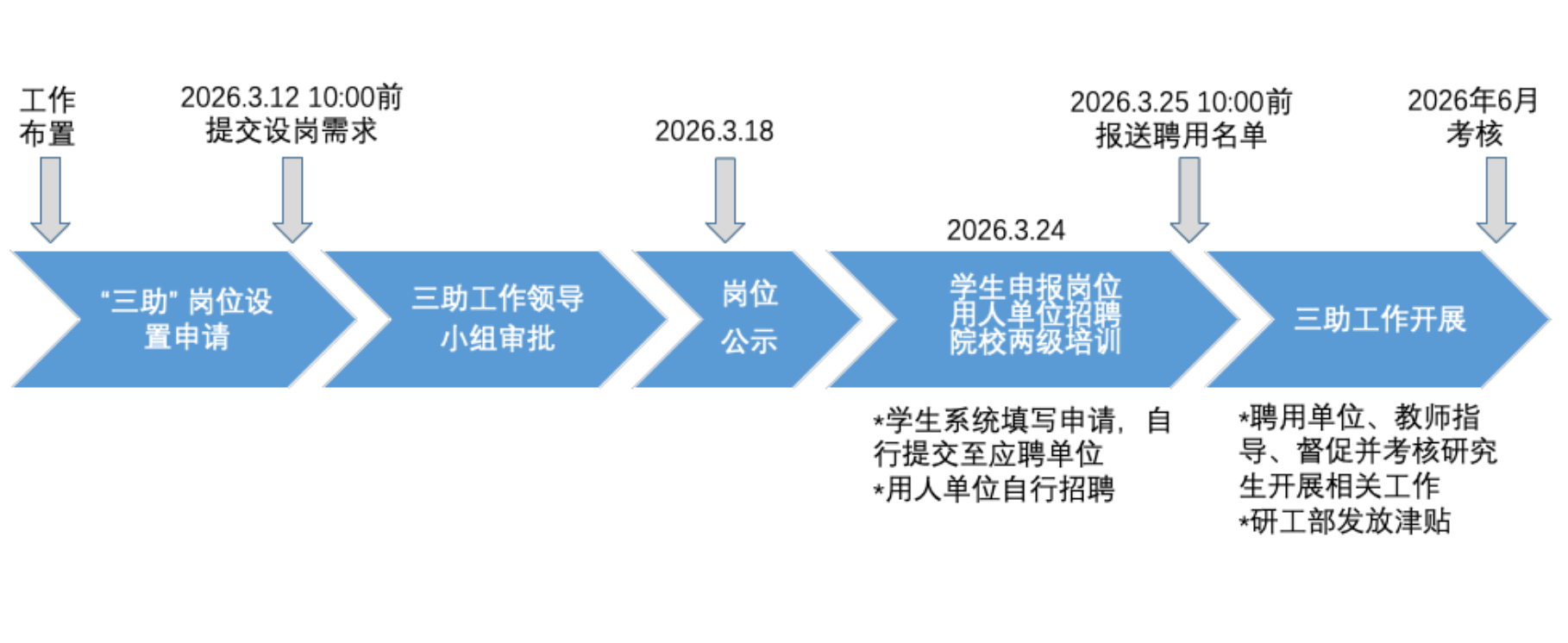 2.岗位审核。我部会同相关部门确定岗位设置建议方案,报学校研究生“三助”工作领导小组审核批准。获批的计划方案预计于3月18日在研究生院网站公示:http://yjs.cueb.edu.cn/。