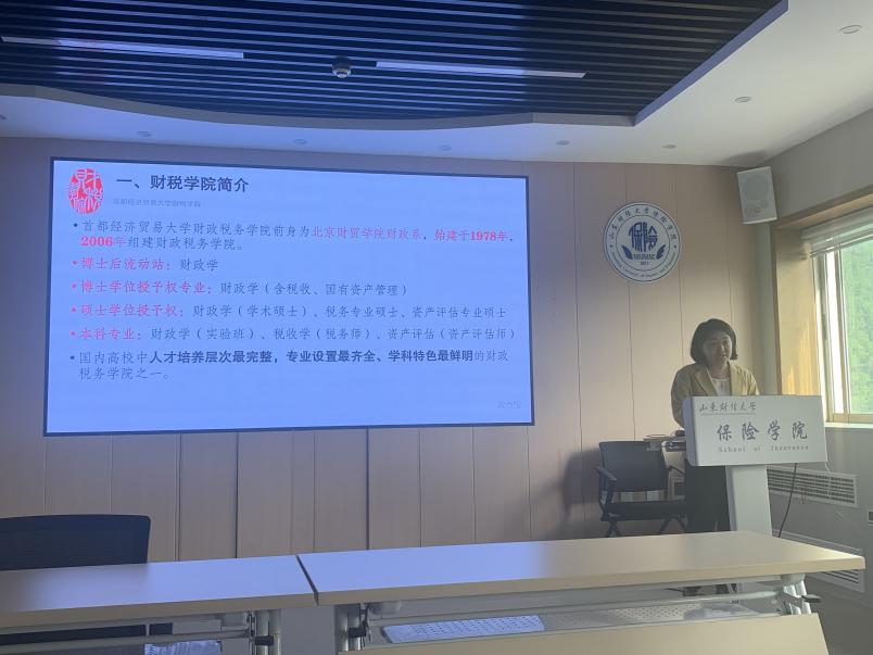 茹玉详细介绍了我校财政税务学院研究生招生培养情况。强调了财政税务学院下设财政系、税务系、资产评估系,有财政学、税收学、资产评估三个本科专业,拥有财政学(学术)硕士点和博士点,拥有税务硕士和资产评估硕士两个专业硕士点,形成了本科生、硕士研究生、博士研究生多层次、高水平的教育结构。在长期办学实践中,形成了应用型、复合型高水平人才培养模式。