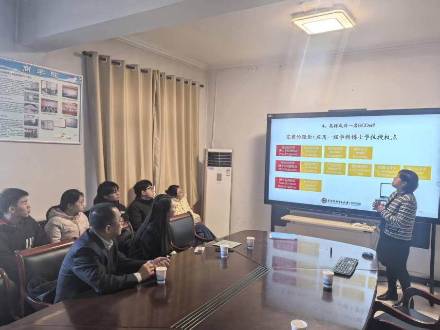 为提升我校博士研究生生源质量,加强校际之间的合作交流,2025年12月4日,我校研究生院院长王军、办公室主任吕强、院长助理赵明,经济学院教授徐则荣,城市经济与公共管理学院副教授颜燕,会计学院副教授李瑞敬和肖亦忱老师,财政税务学院刘畅老师,赴河北经贸大学开展博士研究生招生宣讲。本次活动由我校研究生院挂职领导、河北经贸大学研究生院副院长李伟联系安排。