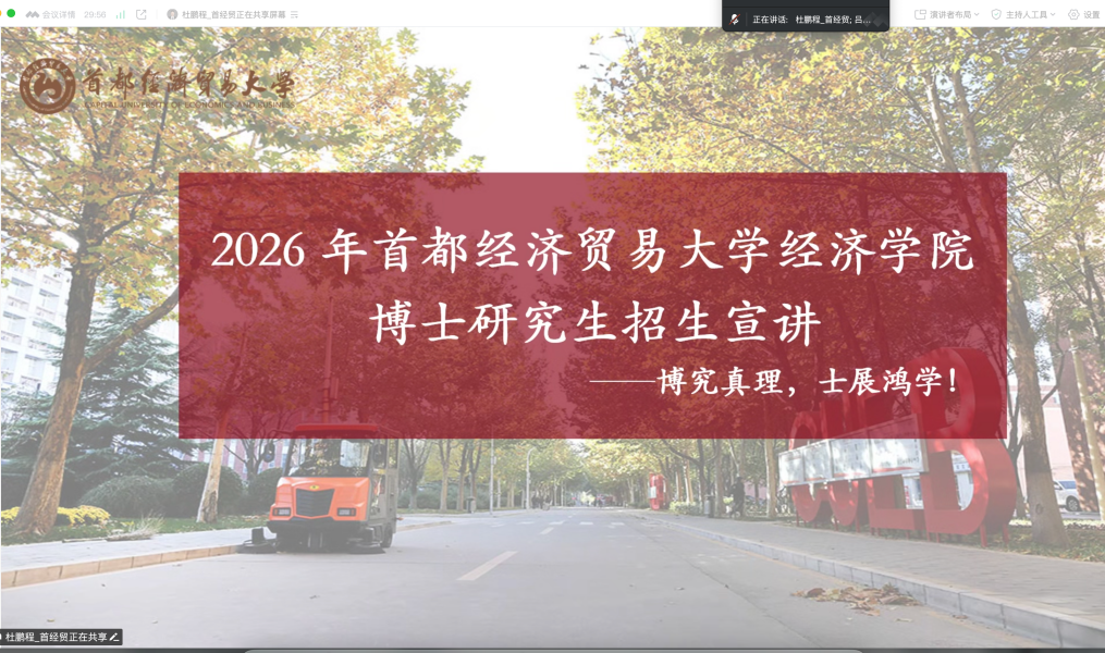 此外,研究生院院长助理赵明补充介绍了我校城市经济与公共管理学院、会计学院、劳动经济学院、财政税务学院、法学院、金融学院、统计与数据科学学院的博士招生专业设置、计划人数及导师情况,并为学生们解答相关疑问。