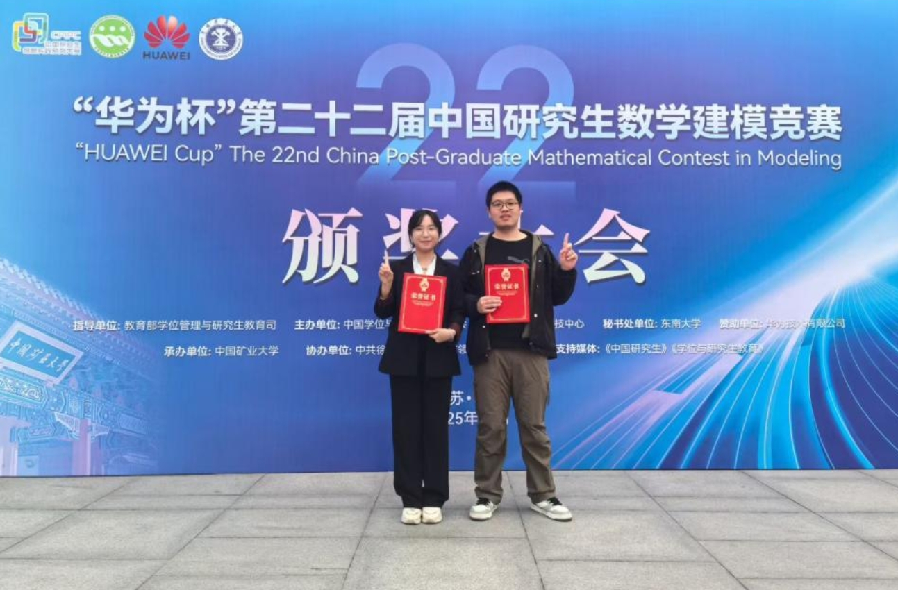 近日,“华为杯”第二十二届中国研究生数学建模竞赛颁奖大会在中国矿业大学(徐州)举行。我校在本届竞赛中表现突出,获得全国一等奖1项,取得历史性突破!