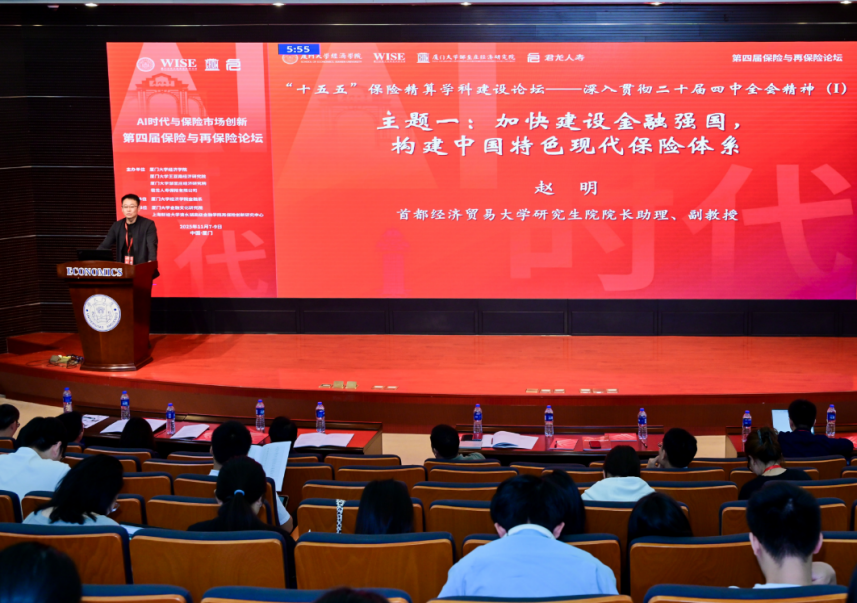 本次博士研究生招生宣讲活动,依托在厦门大学召开的第四届保险与再保险论坛,包括山东财经大学、河南财经政法大学、青岛大学、广东外语外贸大学等我校生源集中院校的经济、管理类研究生参加。在主题分享环节,赵明重点介绍了我校博士研究生的招生政策和考试方式,分析了近3年我校博士研究生招生报录比等数据信息,宣传了我校博士研究生知名导师及团队,并从博士研究生培养情况、奖助体系和就业近况进行了详细介绍。分享结束后,部分培养单位进一步咨询了我校博士研究生招生细节,并表示会积极动员学生报考。