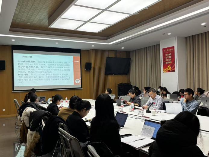 报告环节中,八位汇报人聚焦数字经济驱动农业转型、数字内容贸易与碳排放、碳价预测方法创新等前沿主题展开分享,研究内容横跨数字经济、环境经济、金融工程等多个领域,综合运用实证分析、案例研究等多元方法,凸显了经济学研究的科学性与现实意义。点评环节,唐代盛着重强调学术研究中个人兴趣与公共价值的结合,就核心概念界定、内生性问题处理等给出关键建议;许敬轩聚焦研究逻辑连贯性与方法严谨性,围绕机制分析深度、文献综述全面性等提供改进思路;于晓丹关注变量测度准确性、实证设计优化等细节,以精准提问启发同学们完善研究。